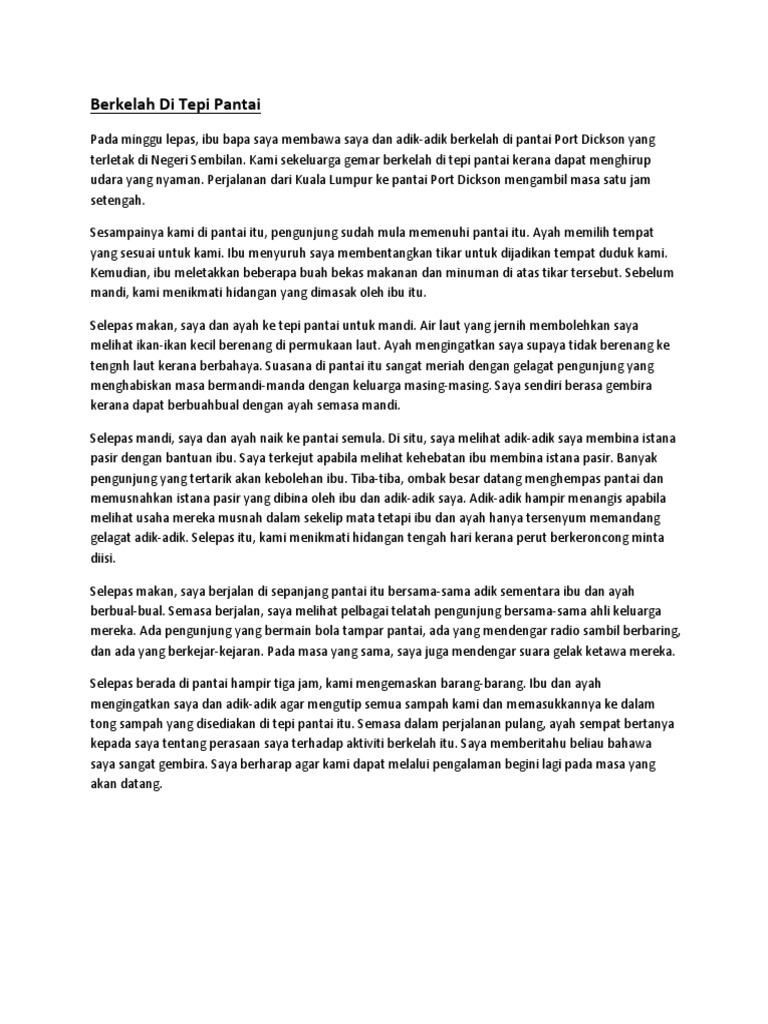 Sudut Bm Cikgu Tan Contoh Karangan 10 Berkelah Di Pantai